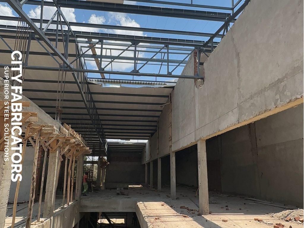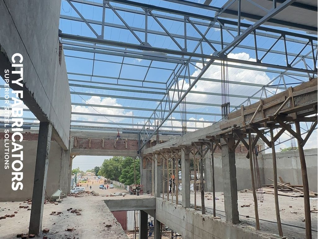 City Fabricators delivered the full structural steel and roofing works for the NSSA Chitungwiza Shopping Complex, providing strong, efficient, and modern steel structures that support high traffic retail operations and enhance the overall architectural finish of the development.
